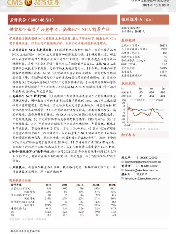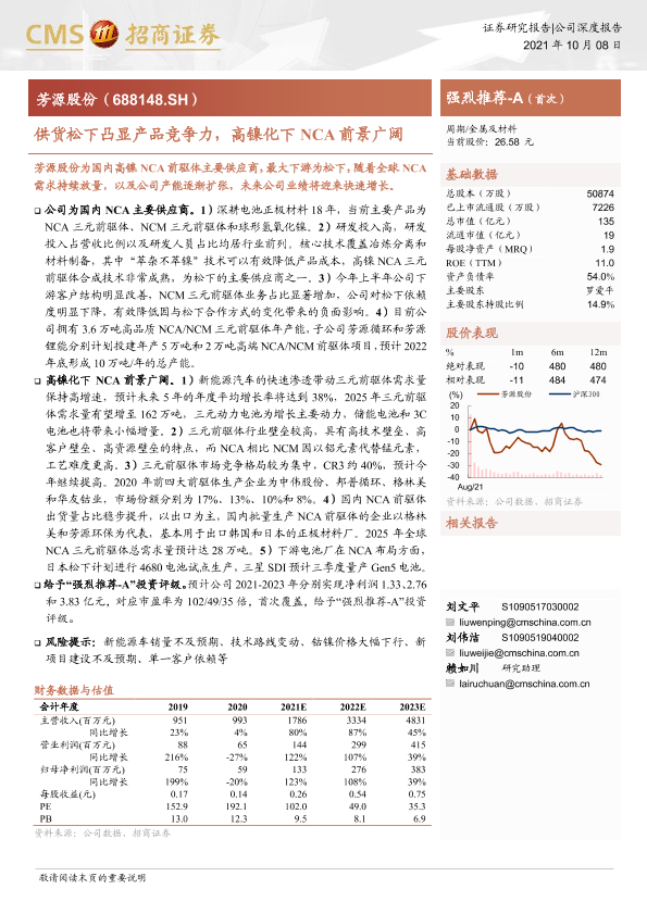 【海通证券】【20211008】供货松下凸显产品竞争力,高镍化下NCA前景广阔-19页