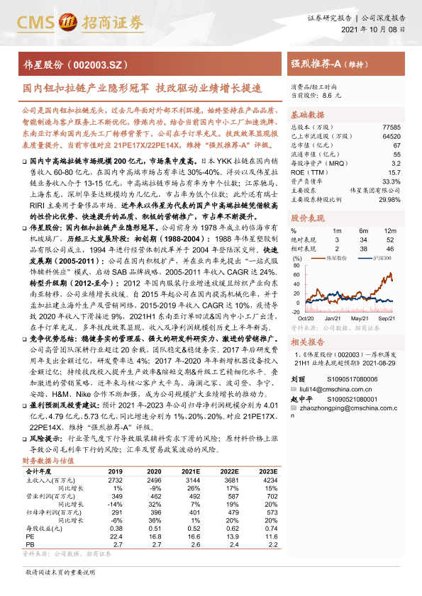 【海通证券】【20211008】国内钮扣拉链产业隐形冠军 技改驱动业绩增长提速-19页