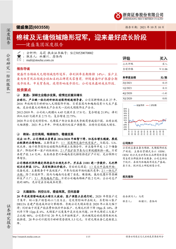 【浙商证券】【20211010】健盛集团深度报告:棉袜及无缝领域隐形冠军,迎来最好成长阶段-15页