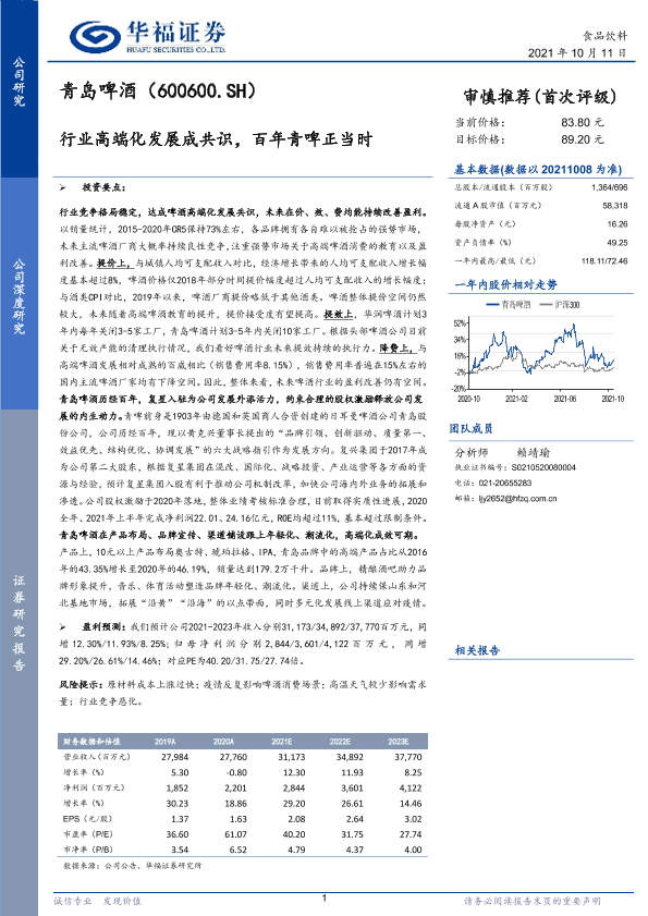 【华福证券】【20211011】行业高端化发展成共识,百年青啤正当时-27页