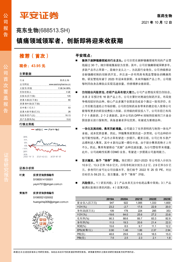 【平安证券】【20211012】苑东生物-688513.SH-镇痛领域领军者,创新即将迎来收获期-31页