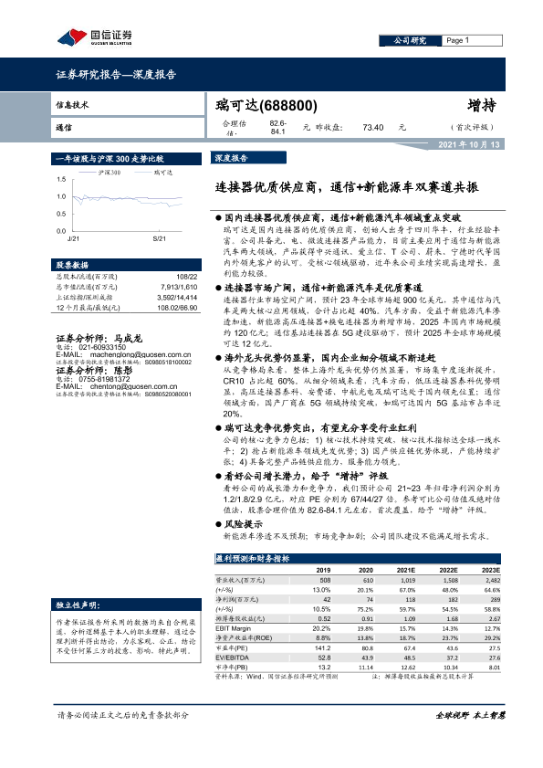 【国信证券】【20211013】瑞可达-688800.SH-连接器优质供应商,通信+新能源车双赛道共振-40页
