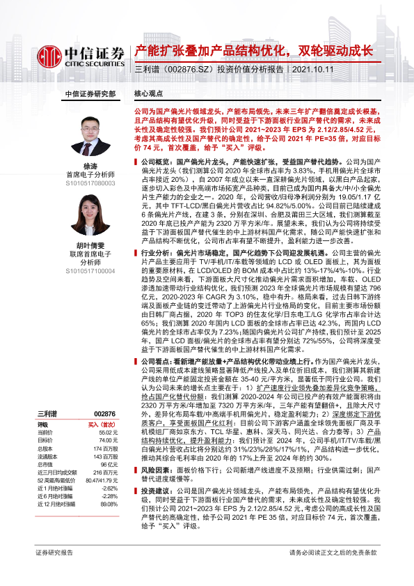 【中信证券】【20211011】20211011-中信证券-三利谱-002876.SZ-投资价值分析报告:产能扩张叠加产品结构优化,双轮驱动成长-37页