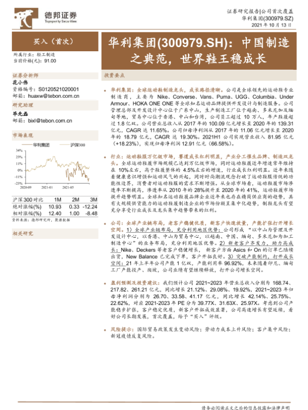 【德邦证券】【20211013】20211013-德邦证券-华利集团-300979.SZ-中国制造之典范,世界鞋王稳成长-28页