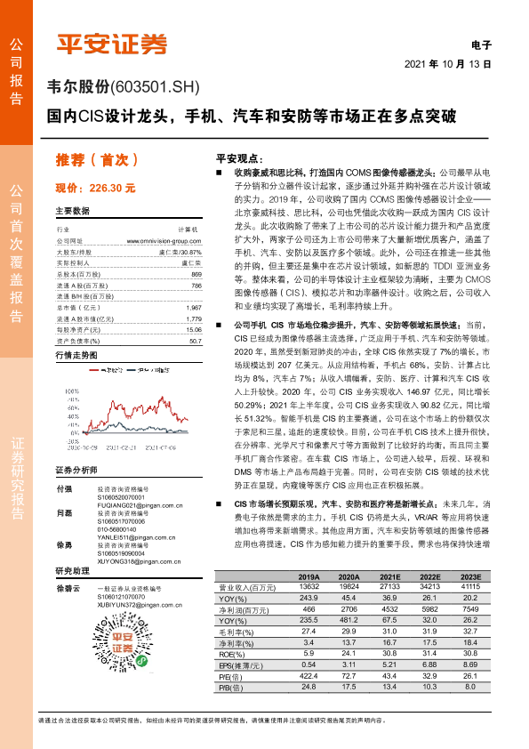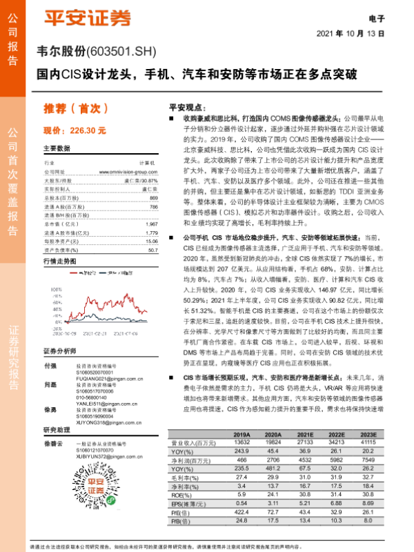 【平安证券】【20211013】国内CIS设计龙头,手机、汽车和安防等市场正在多点突破-29页