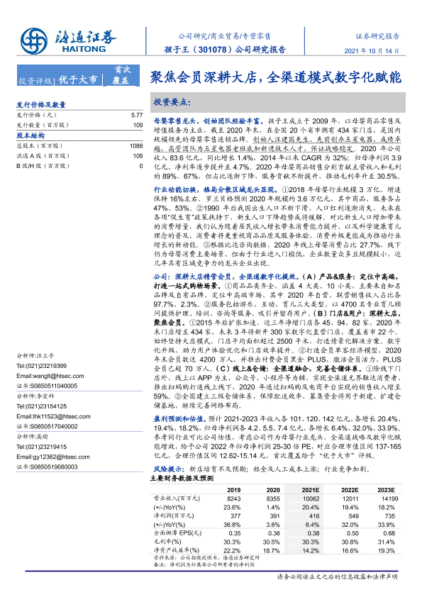 【海通证券】【20211014】孩子王-301078.SZ-聚焦会员深耕大店,全渠道模式数字化赋能-25页