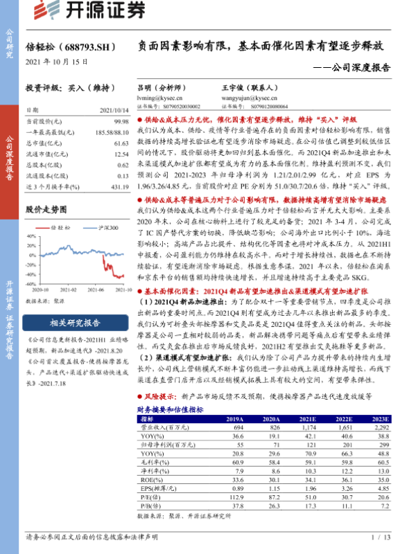 产品迭代 倍轻松 按摩器市场 渠道扩展 财务分析