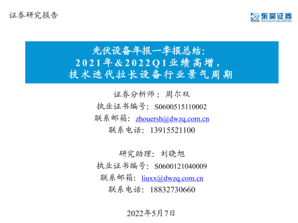 【东吴证券】【20220507】光伏设备行业年报一季报总结:2021年&2022Q1业绩高增,技术迭代拉长设备行业景气周期-59页