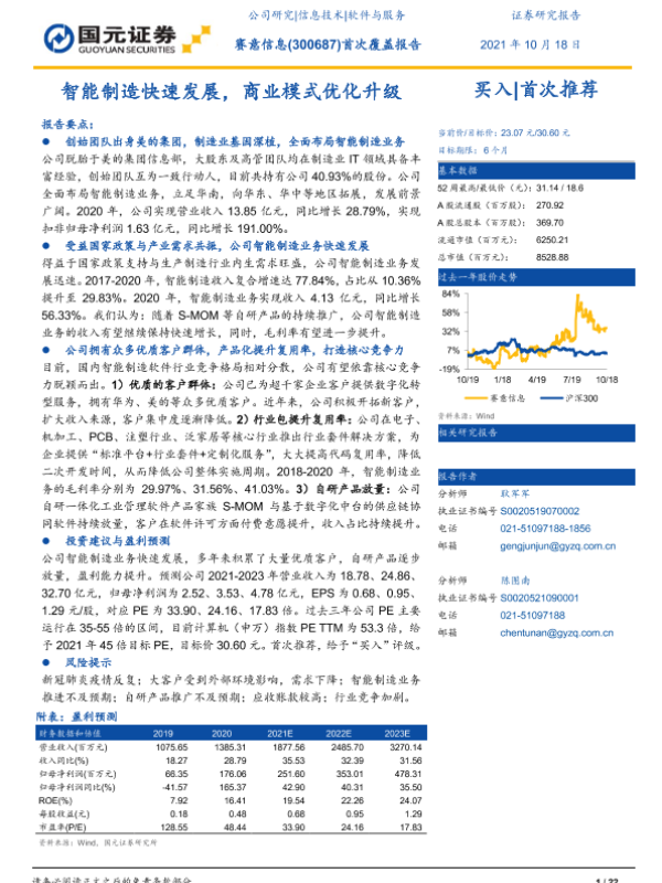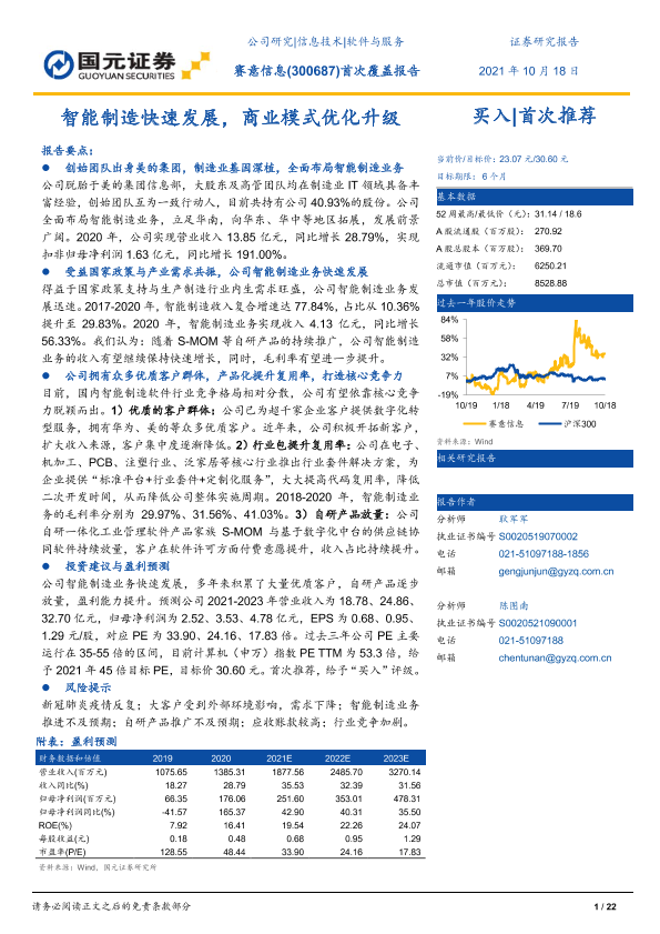 【国元证券】【20211018】赛意信息(300687)首次覆盖报告:智能制造快速发展,商业模式优化升级-22页