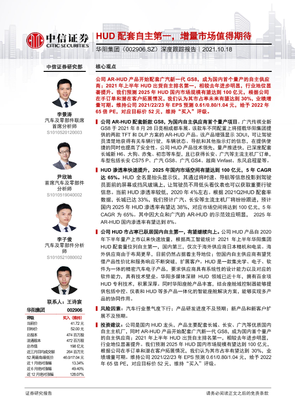 【中信证券】【20211018】20211018-中信证券-华阳集团-002906.SZ-深度跟踪报告:HUD配套自主第一,增量市场值得期待-16页