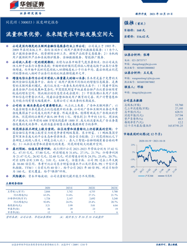 【华创证券】【20211019】同花顺-300033.SZ-深度研究报告:流量积累优势,未来随资本市场发展空间大-21页