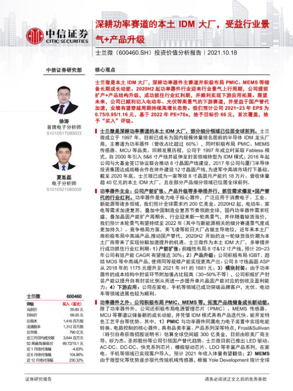 【中信证券】【20211018】深耕功率赛道的本土IDM大厂,受益行业景气+产品升级-45页
