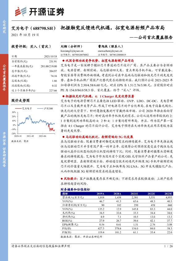 【开源证券】【20211019】艾为电子-688798.SH-公司首次覆盖报告:把握触觉反馈迭代机遇,拓宽电源射频产品布局-26页