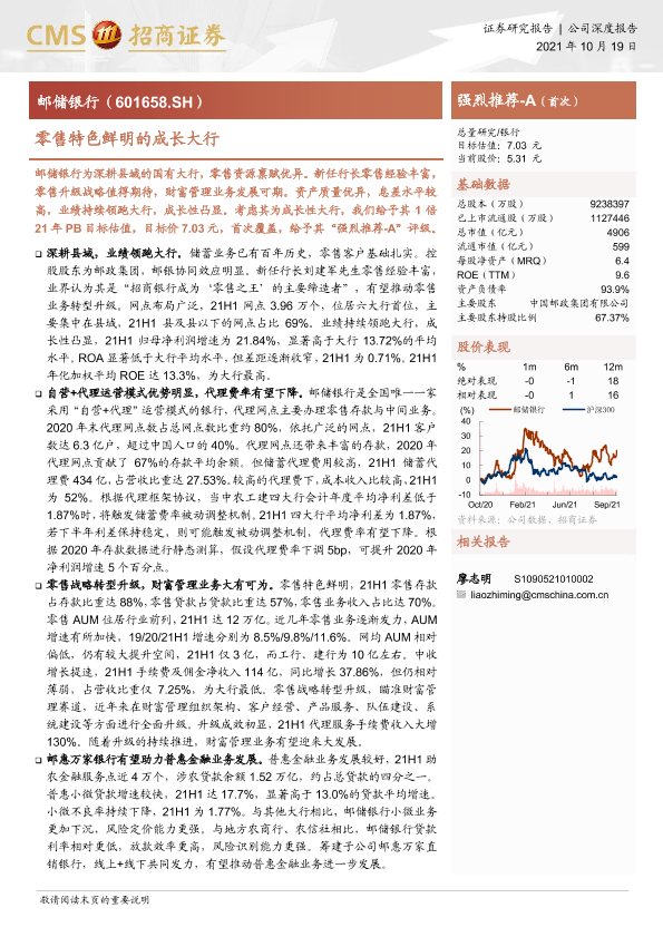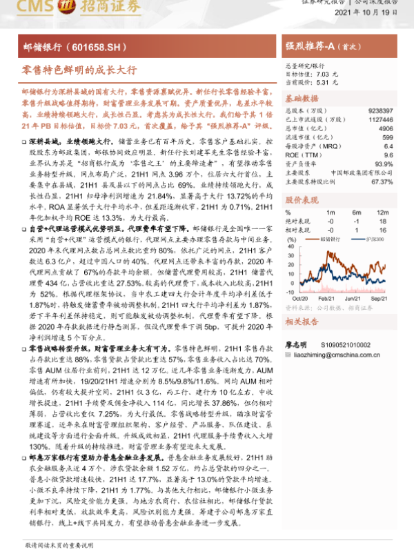 【海通证券】【20211019】邮储银行-零售特色鲜明的成长大行-31页