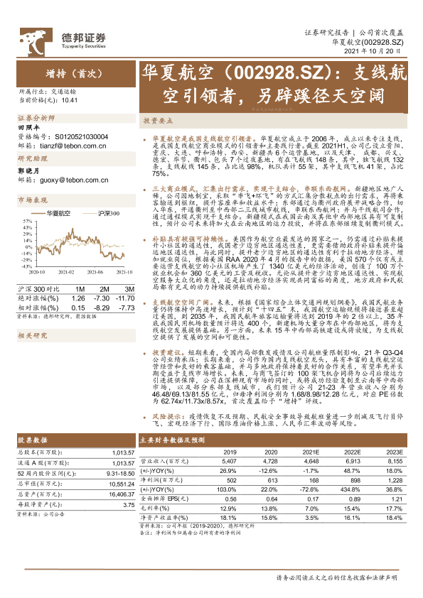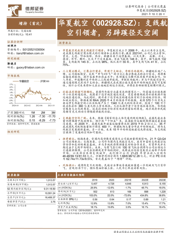 【德邦证券】【20211020】华夏航空:支线航空引领者,另辟蹊径天空阔-25页