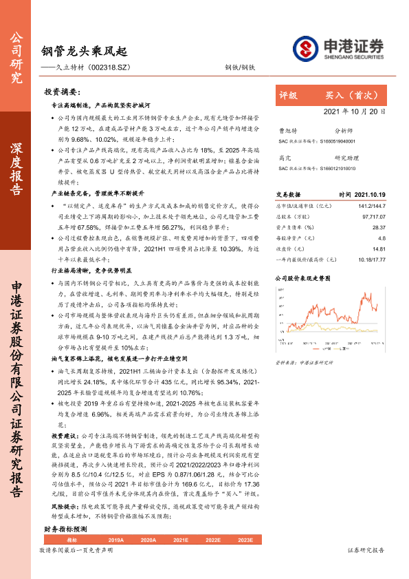 【申港证券】【20211020】钢管龙头乘风起——久立特材(002318.SZ)-26页