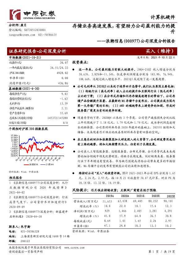 【中原证券】【20211022】20211022-中原证券-浪潮信息-000977.SZ-公司深度分析报告:存储业务高速发展,有望助力公司盈利能力的提升-19页