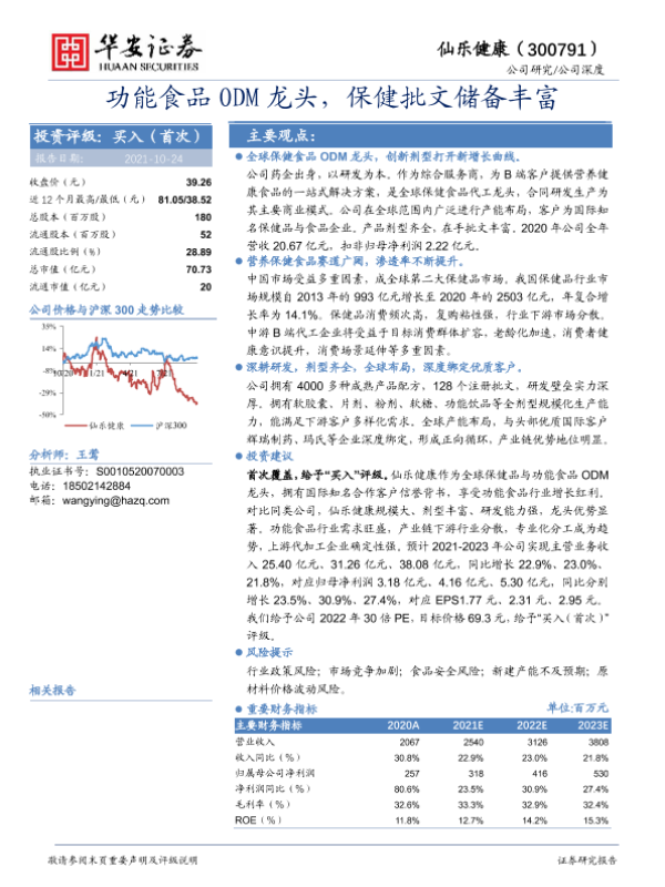 【华安证券】【20211024】功能食品ODM龙头,保健批文储备丰富-30页