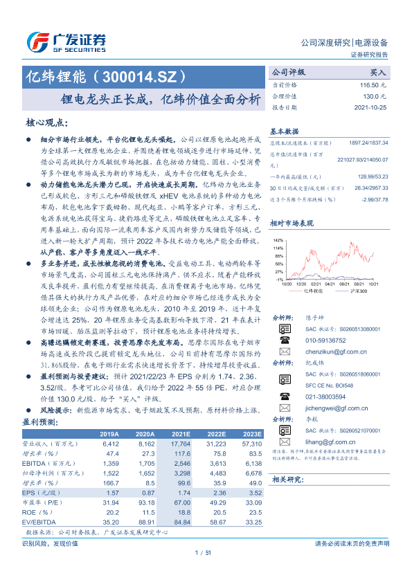 【广发证券】【20211025】锂电龙头正长成,亿纬价值全面分析-51页