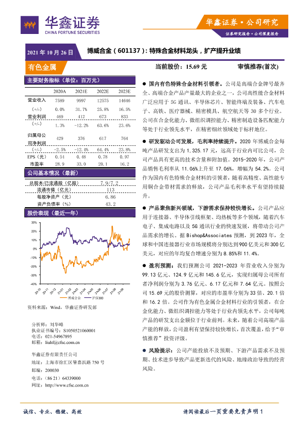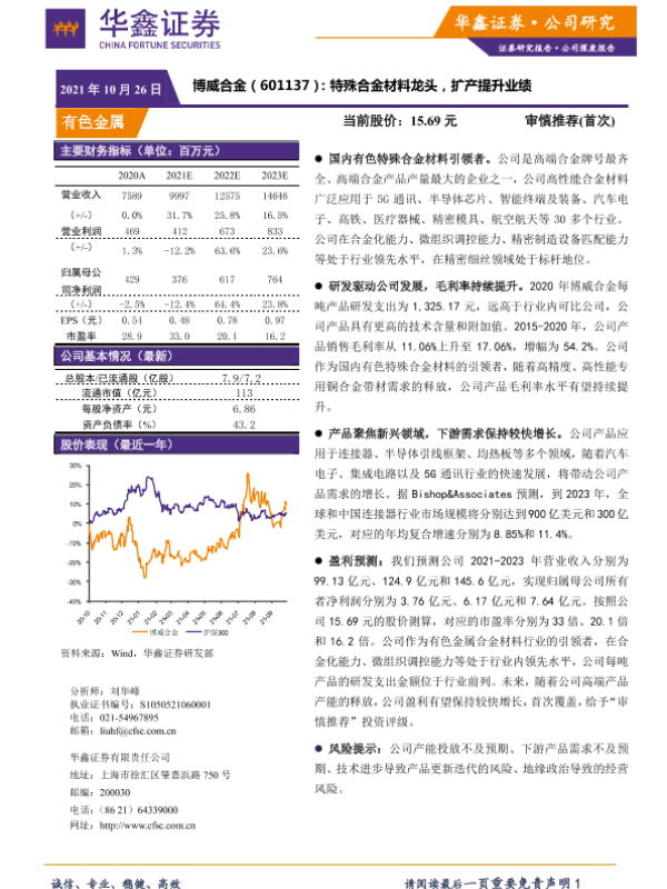 【华鑫证券】【20211026】博威合金-601137.SH-特殊合金材料龙头,扩产提升业绩-17页