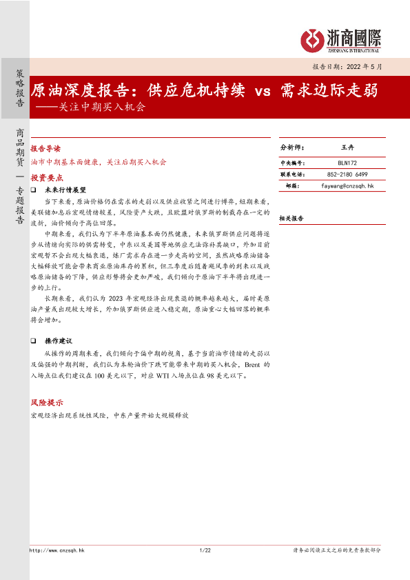 【浙商国际】【20220512】关注中期买入机会:原油深度报告,供应危机持续vs需求边际走弱-22页