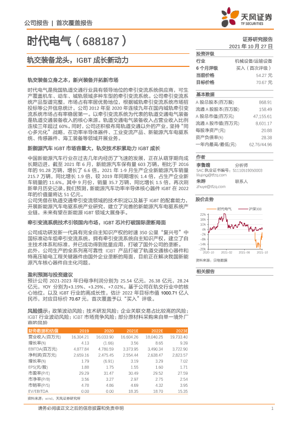 【天风证券】【20211027】20211027-天风证券-时代电气-688187.SH-轨交装备龙头,IGBT成长新动力-33页