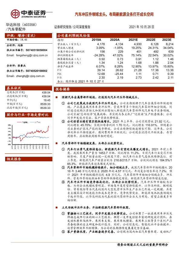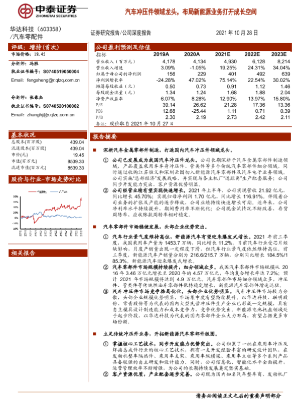【中泰证券】【20211028】20211028-中泰证券-华达科技-603358.SH-汽车冲压件领域龙头,布局新能源业务打开成长空间-26页