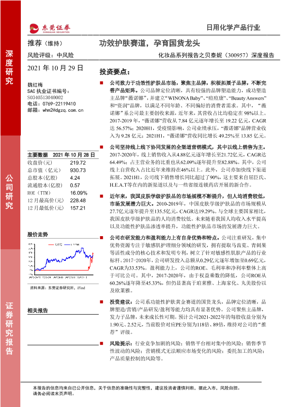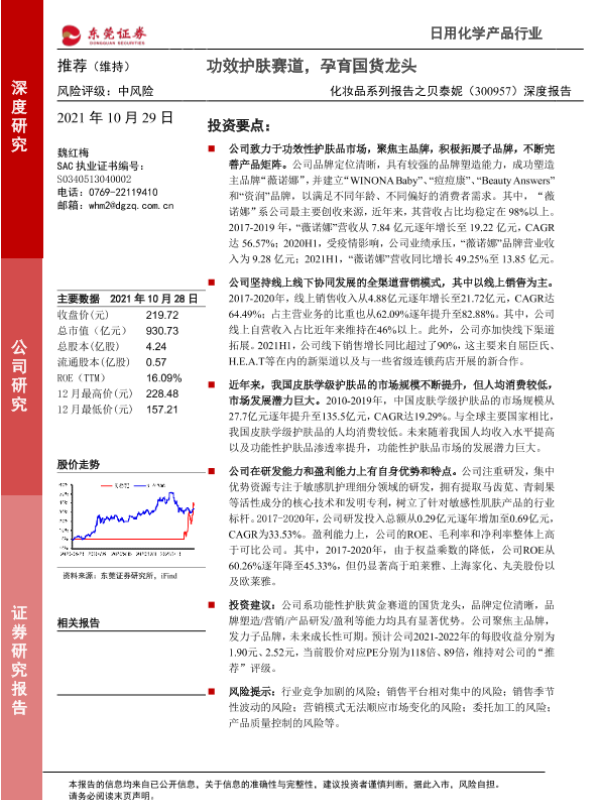 【东莞证券】【20211029】20211029-东莞证券-贝泰妮-300957.SZ-化妆品系列报告之贝泰妮深度报告:功效护肤赛道,孕育国货龙头-35页