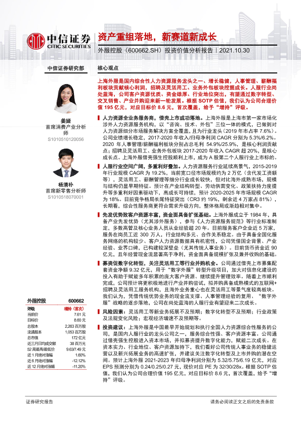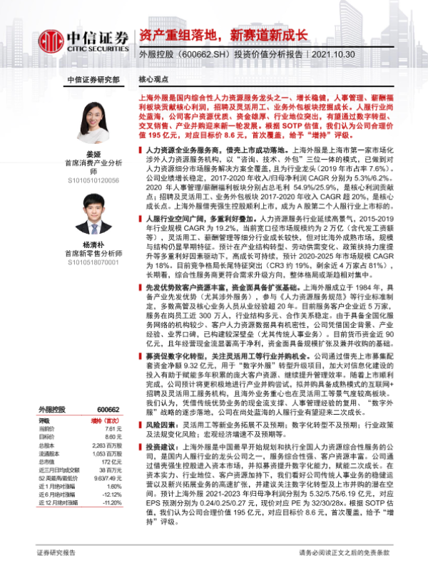 【中信证券】【20211030】20211030-中信证券-外服控股-600662.SH-投资价值分析报告:资产重组落地,新赛道新成长-36页