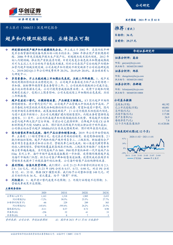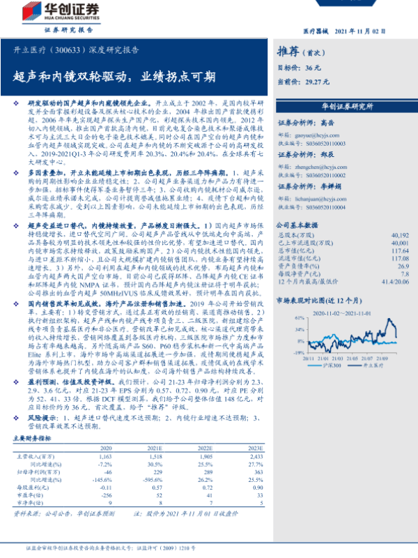 【华创证券】【20211102】20211102-华创证券-开立医疗-300633.SZ-深度研究报告:超声和内镜双轮驱动,业绩拐点可期-25页