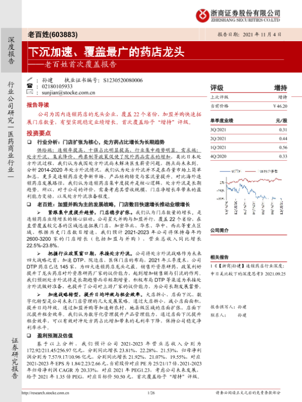 【浙商证券】【20211104】老百姓首次覆盖报告:下沉加速、覆盖最广的药店龙头-26页