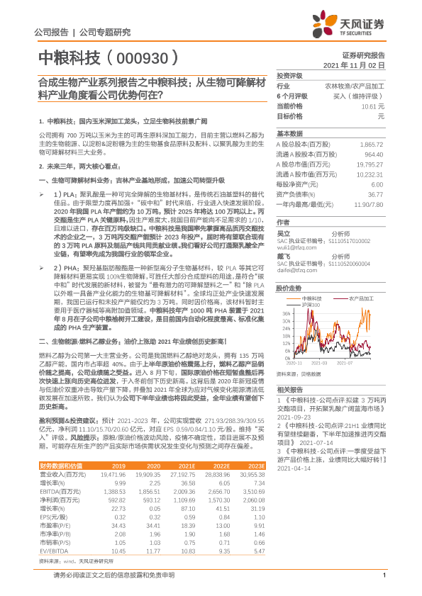 【天风证券】【20211102】合成生物产业系列报告之中粮科技:从生物可降解材料产业角度看公司优势何在?-24页