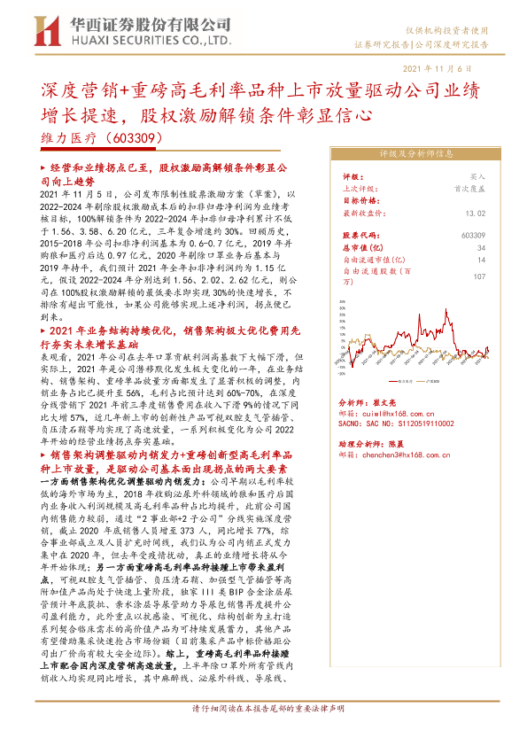 【华西证券】【20211106】深度营销+重磅高毛利率品种上市放量驱动公司业绩增长提速,股权激励解锁条件彰显信心-48页