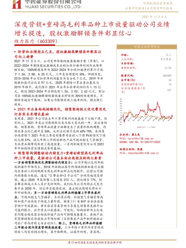 业绩增长 市场营销 维力医疗 股权激励 高毛利率产品