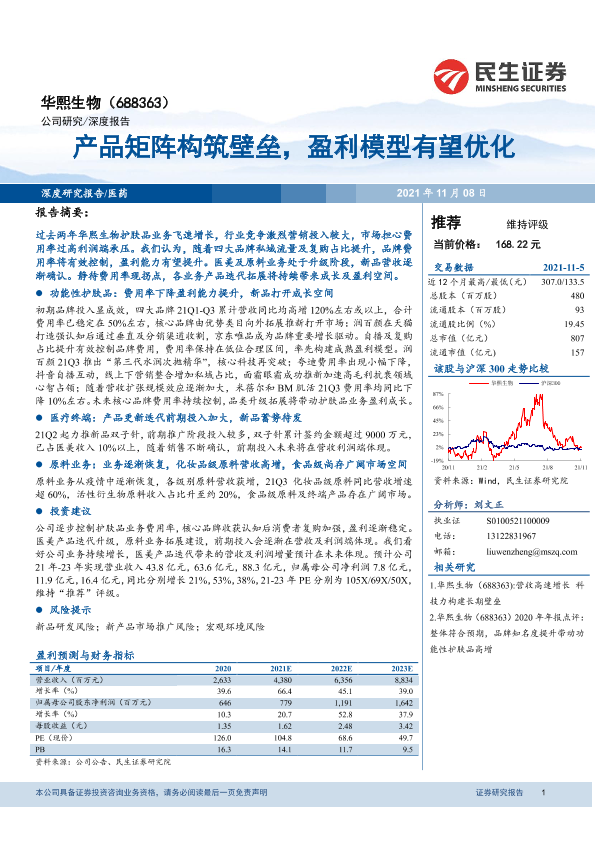 【民生证券】【20211108】华熙生物(688363)产品矩阵构筑壁垒,盈利模型有望优化-40页