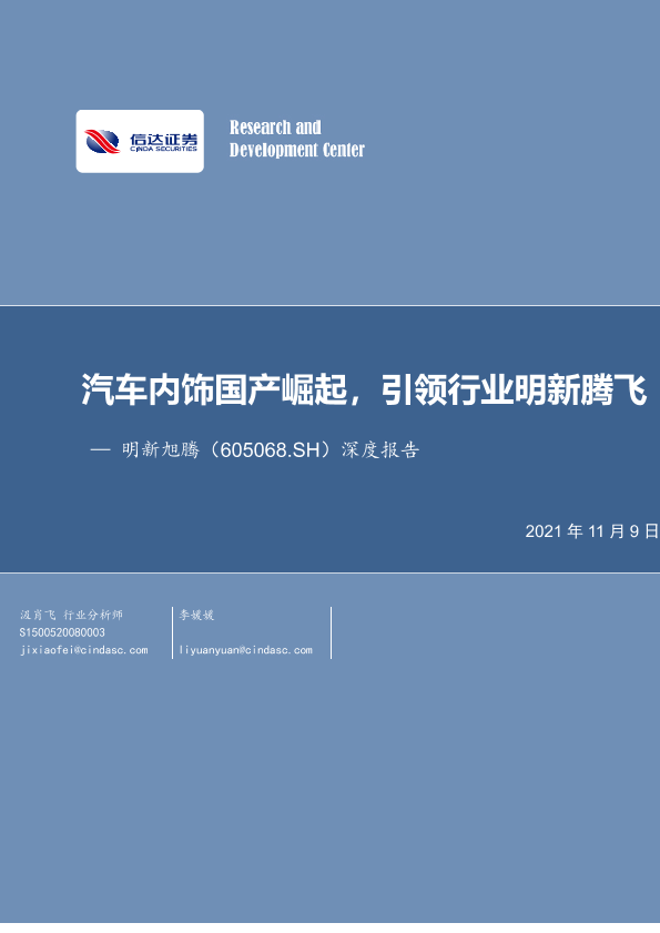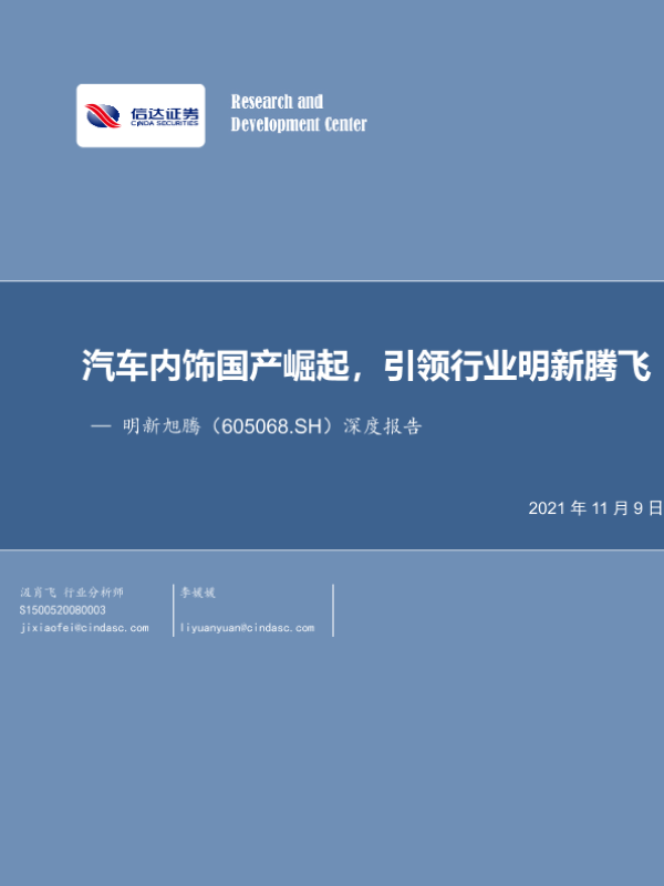 【信达证券】【20211109】20211109-信达证券-明新旭腾-605068.SH-深度报告:汽车内饰国产崛起,引领行业明新腾飞-27页