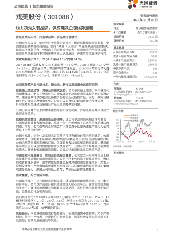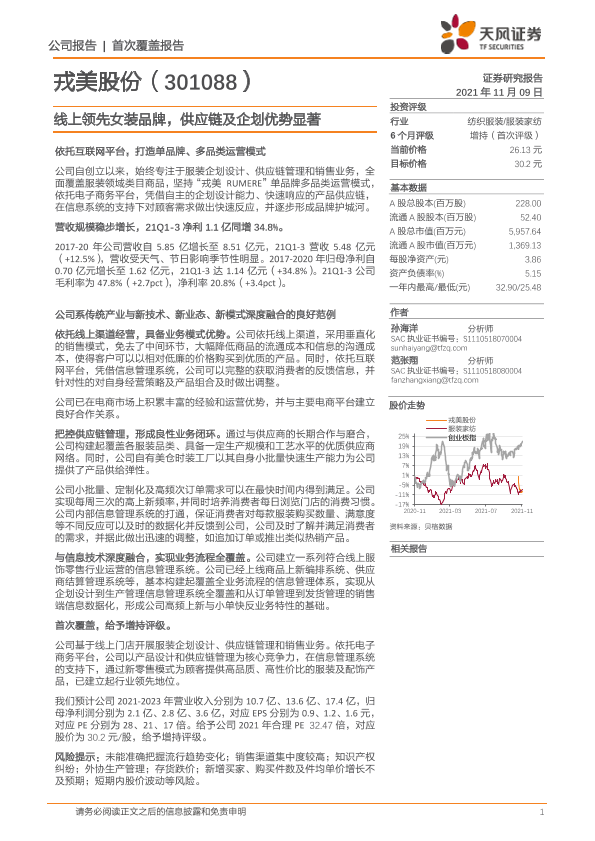 【天风证券】【20211109】20211109-天风证券-戎美股份-301088.SZ-线上领先女装品牌,供应链及企划优势显著-30页