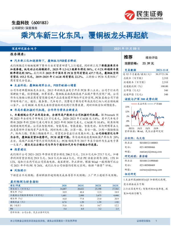 【民生证券】【20211109】乘汽车新三化东风,覆铜板龙头再起航-32页