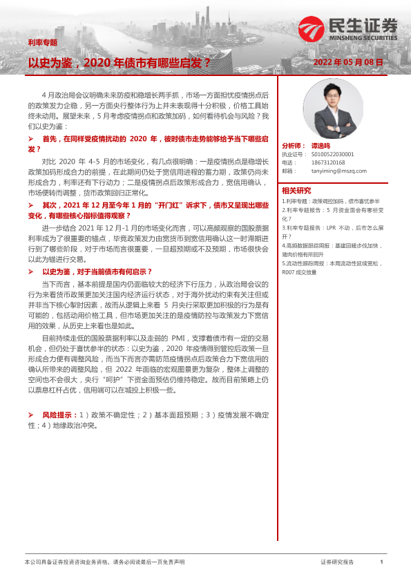 【民生证券】【20220508】利率专题:以史为鉴,2020年债市有哪些启发?-32页