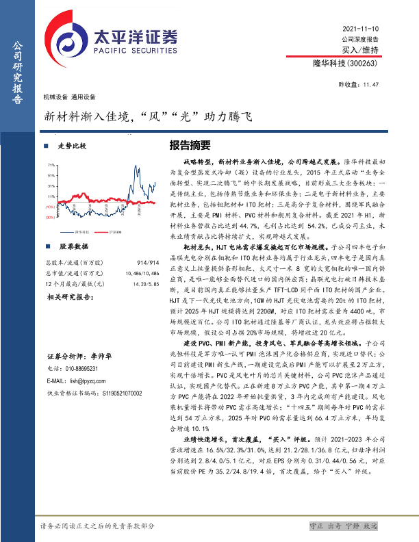 【太平洋证券】【20211110】20211110-太平洋-隆华科技-300263.SZ-新材料渐入佳境,“风”“光”助力腾飞-34页