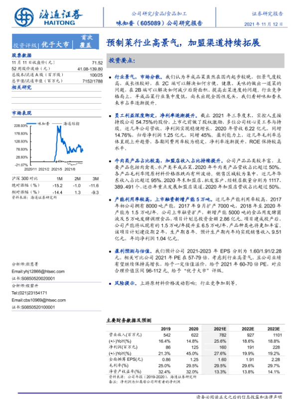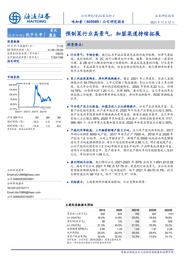 【海通证券】【20211112】20211112-海通证券-味知香-605089.SH-公司研究报告:预制菜行业高景气,加盟渠道持续拓展-19页