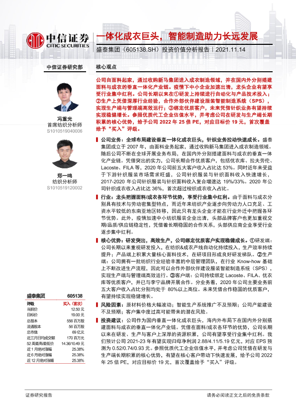 【中信证券】【20211114】20211114-中信证券-盛泰集团-605138.SH-投资价值分析报告:一体化成衣巨头,智能制造助力长远发展-27页