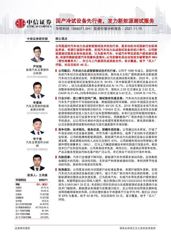【中信证券】【20211115】20211115-中信证券-华依科技-688071.SH-投资价值分析报告:国产冷试设备先行者,发力新能源测试服务-31页