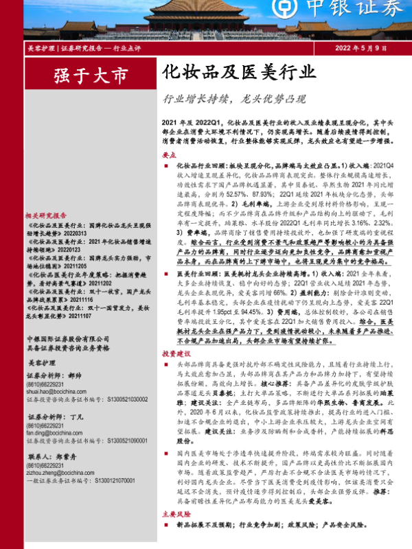 【中银证券】【20220509】化妆品及医美行业:行业增长持续,龙头优势凸现-23页