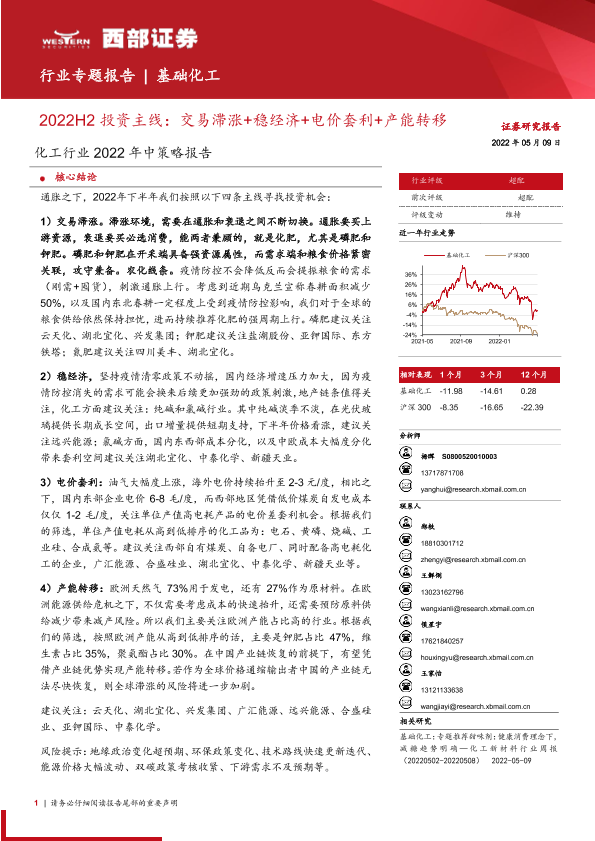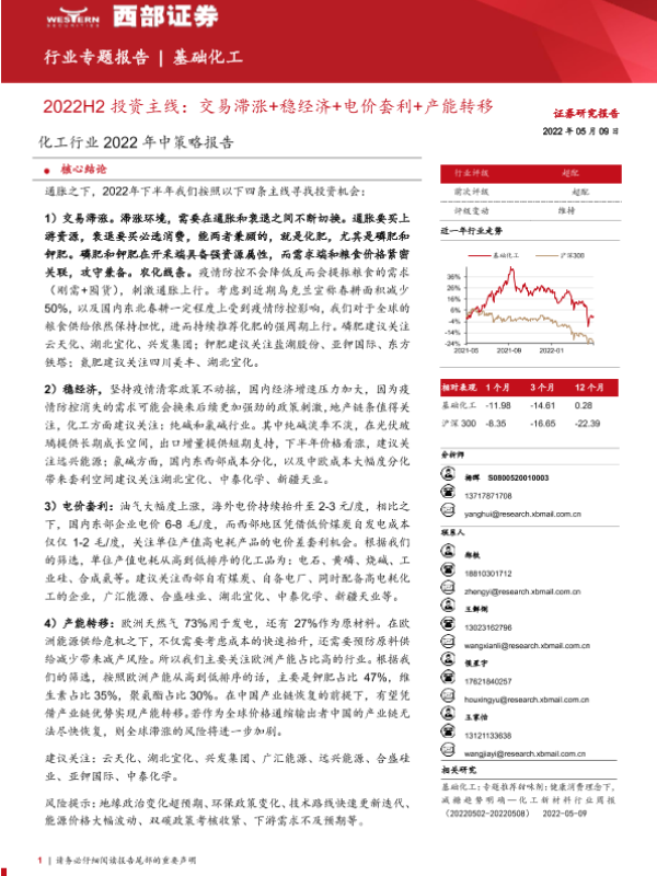 【西部证券】【20220509】化工行业2022年中策略报告:2022H2投资主线,交易滞涨+稳经济+电价套利+产能转移-50页