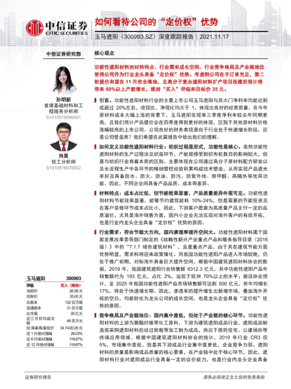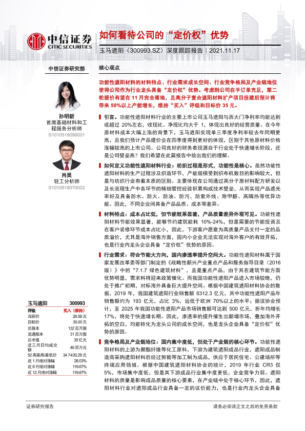 公司财务 定价权 市场前景 行业分析 遮阳材料