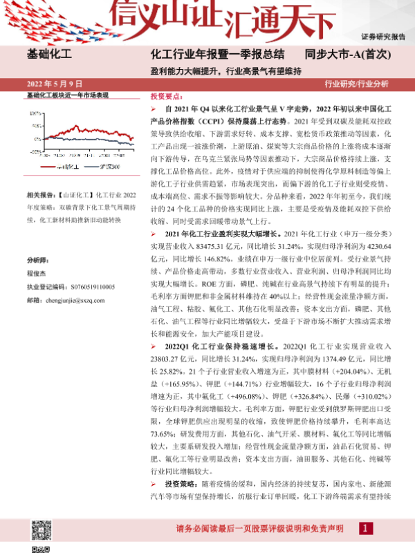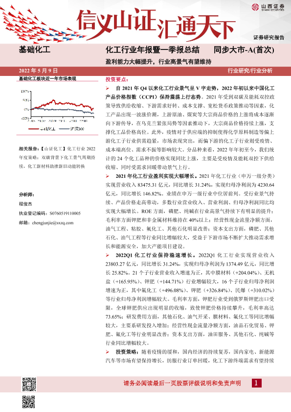 【山西证券】【20220509】化工行业年报暨一季报总结:盈利能力大幅提升,行业高景气有望维持-23页