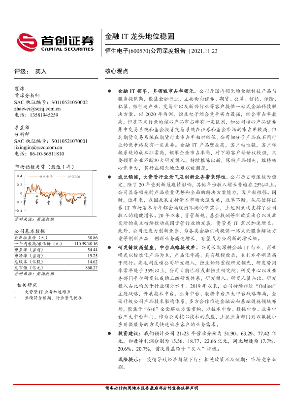 【首创证券】【20211123】20211123-首创证券-恒生电子-600570.SH-公司深度报告:金融IT龙头地位稳固-24页
