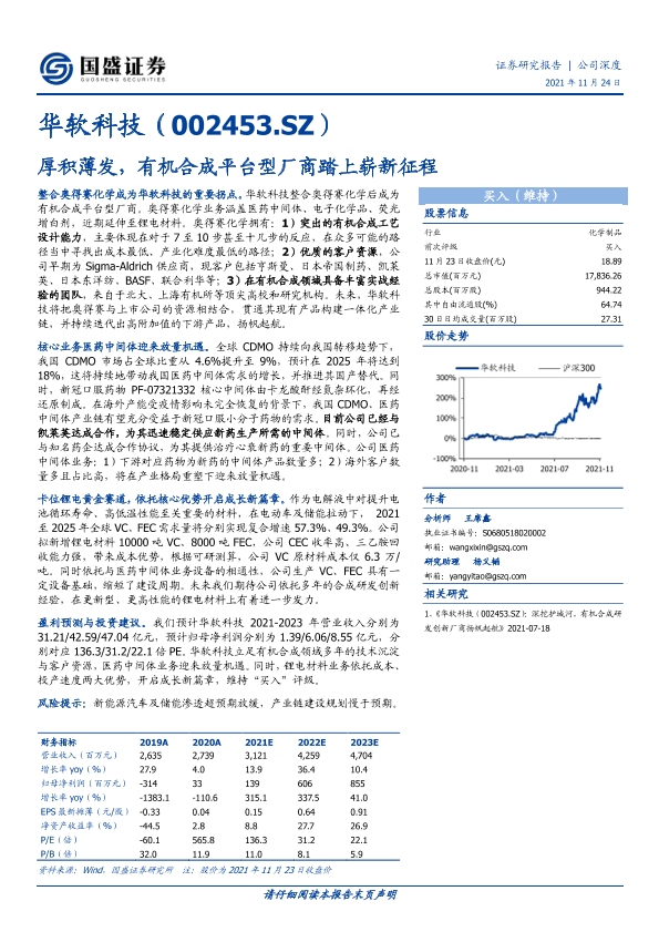 【国盛证券】【20211124】华软科技(002453.SZ)厚积薄发,有机合成平台型厂商踏上崭新征程-16页