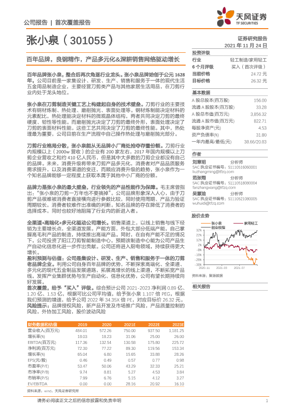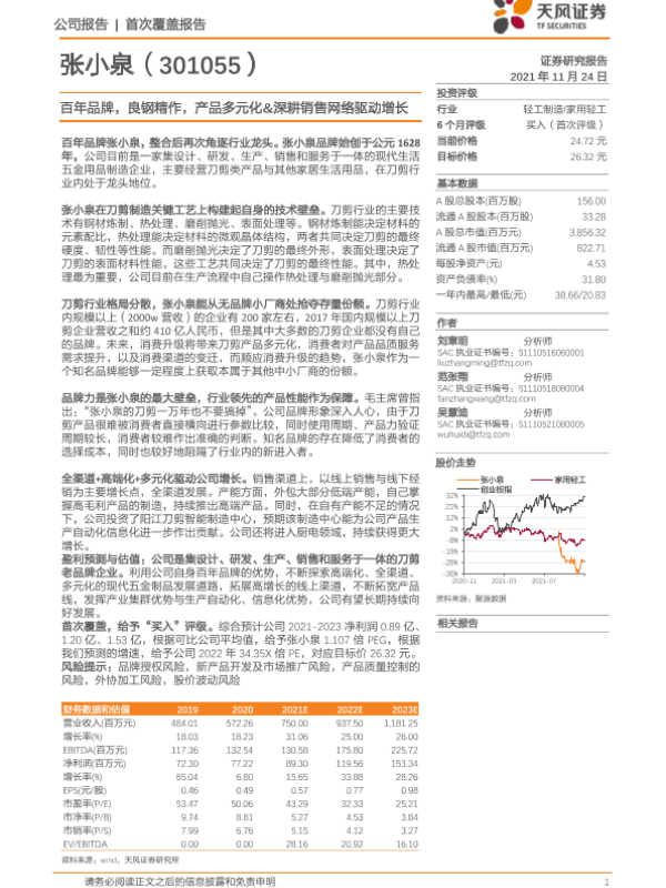 【天风证券】【20211124】20211124-天风证券-张小泉-301055.SZ-百年品牌,良钢精作,产品多元化&深耕销售网络驱动增长-27页